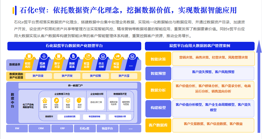 數(shù)字化采購帶來三大供應鏈模式變革:商業(yè)模式、管理模式和服務模式。核心企業(yè)依托資源聚集優(yōu)勢,將其資源整合能力和管理能力向外開放和輸出,提供開放的平臺,實現(xiàn)盈利,引起商業(yè)模式變革;同時,數(shù)據(jù)價值逐漸被釋放,實現(xiàn)數(shù)據(jù)驅(qū)動的供應鏈管理模式的變革;例如:石化e貿(mào)落實數(shù)據(jù)資產(chǎn)化理念,搭建數(shù)據(jù)中臺集中處理業(yè)務數(shù)據(jù),實現(xiàn)數(shù)據(jù)智能應用。