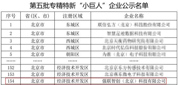 7月14日,北京市經信局發布第五批專精特新‘小巨人’企業公示名單,強聯智創?等243家企業上榜。