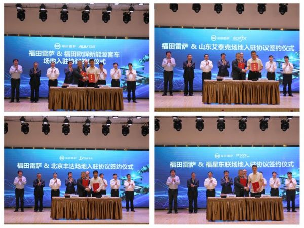 隨后,福田雷薩與福田歐輝新能源客車、宣化產業基地入駐供應商——山東艾泰克、福星東聯以及北京豐達進行場地入駐簽約。