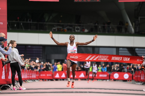 Kibiwott Kandie和Sabastian Sawe在男子10公里比賽中再次正面交鋒,上演了一場精彩酣戰,最終Sabastian Sawe成功戰勝了世界紀錄保持者Kibiwott Kandie,將他的個人最好成績縮短了5秒,以26:49奪得冠軍——位列世界歷史上第五快的男子10公里成績。