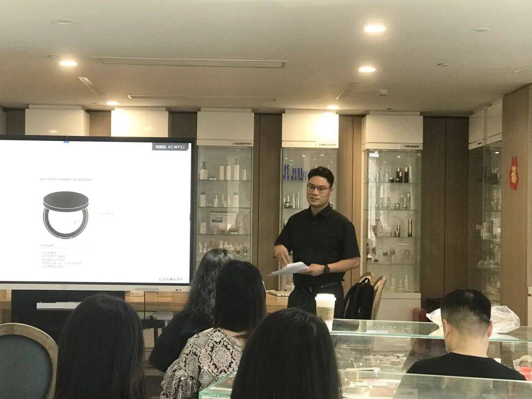 科絲美詩(shī)廣州研究所金成勇所長(zhǎng)在《氣墊底妝品類發(fā)展趨勢(shì)及創(chuàng)新》研討會(huì)上發(fā)言