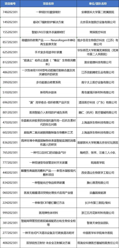 醫(yī)用材料類(lèi)別賽入圍項(xiàng)目