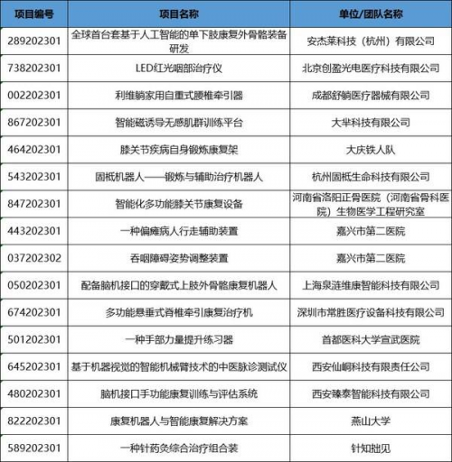康復(fù)器械及輔具類(lèi)別賽入圍項(xiàng)目