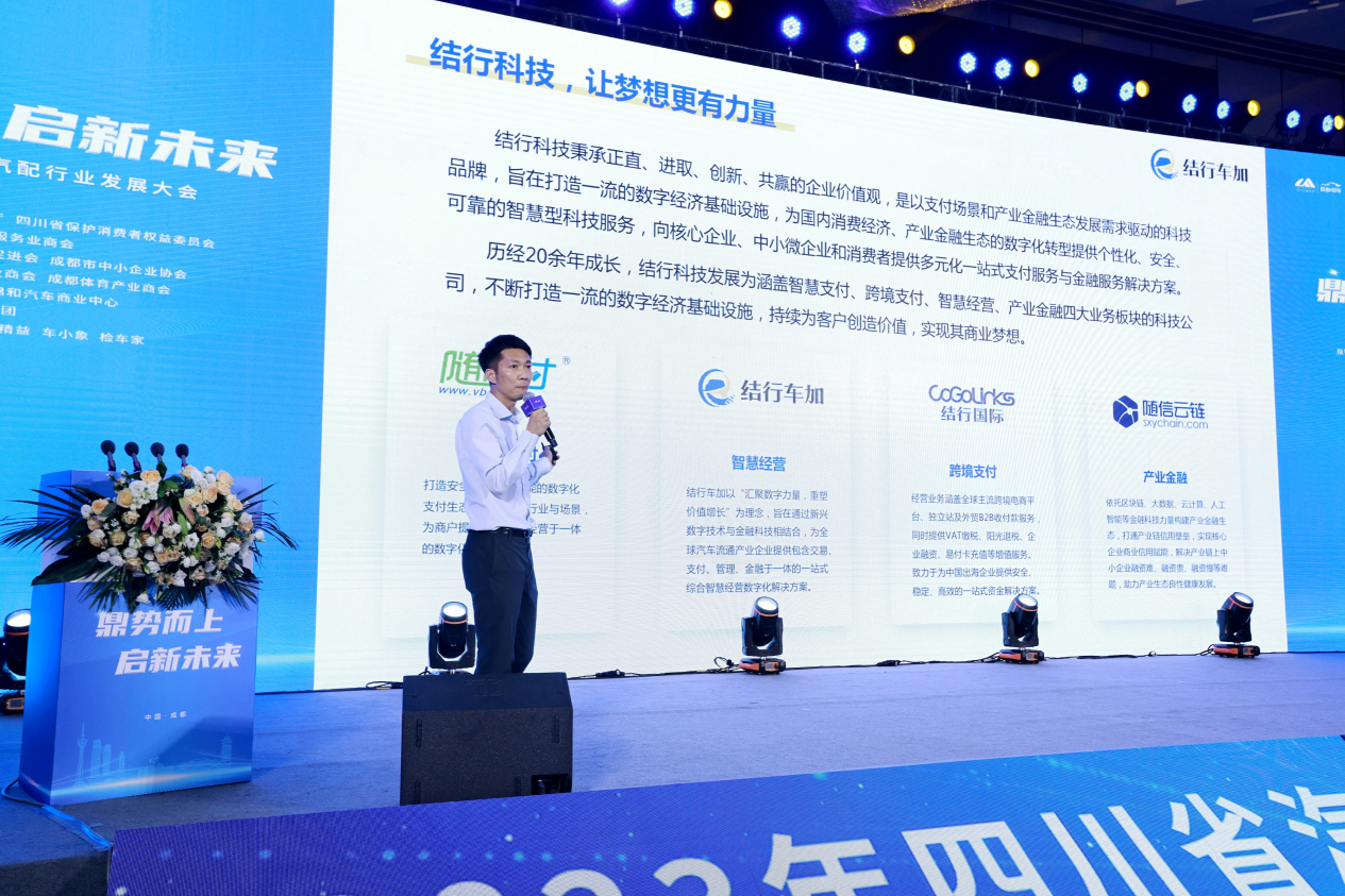 2023年6月11日,由四川省汽車汽配服務業商會主辦、豆秒好車集團承辦的“2023年四川省汽車汽配行業發展大會”在成都隆重舉行,本次峰會以“鼎勢而上·啟新未來”為主題,廣邀800+車商和四川及全國汽車行業商協會、政府主管部門等相聚蓉城,共商行業的變革與機遇。結行科技旗下汽車資產數字化服務平臺結行車加也受邀參會,副總經理史云峰先生在會上做了精彩分享。
