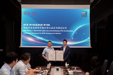 7月10日,國內(nèi)商用車首張UN ECE R155&ECE R156車型VTA證書頒證儀式在比亞迪總部舉行。比亞迪繼獲得商用車第一張ISO/SAE 21434網(wǎng)絡(luò)安全管理流程證書、R155 網(wǎng)絡(luò)安全管理體系(CSMS)以及R156軟件升級(jí)管理體系(SUMS)體系證書后,又率先獲得R155網(wǎng)絡(luò)安全及R156軟件升級(jí)車型認(rèn)證(VTA)證書。
