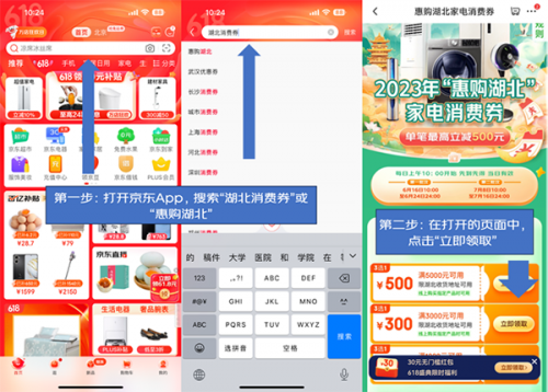 為進一步增強消費市場活力,湖北省面向全省消費者發(fā)放2023“惠購湖北”家電消費券。只要實時定位在湖北且收貨地址為湖北的用戶,均可通過京東APP領取滿5000元減500元、滿3000元減300元、滿1000元減100元消費券,單筆消費至高優(yōu)惠500元,3張消費券任選一張活動期間內可享2次優(yōu)惠,購買家電家居產品更劃算!領取方式也很簡單,即日起至6月24日每日10點在京東APP首頁搜索“湖北消費券”即可進入會場。