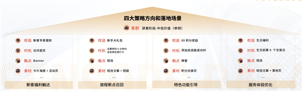 ? 業務策略:匹配業務特點和經營目標的經營策略體系,不同業態的業務策略和場景不同,可嘗試創新的點也不同;匹配業務與客群特點的渠道定位和場景建設