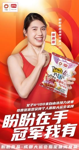 作為成都大運會指定產(chǎn)品,盼盼食品也借此機會向成都大運會表示最誠摯的祝賀,并祝愿張雨霏在接下來的比賽中繼續(xù)取得優(yōu)異的成績,為中國代表隊贏得更多的榮譽。也與盼盼食品一道,一起炫,漂亮贏。