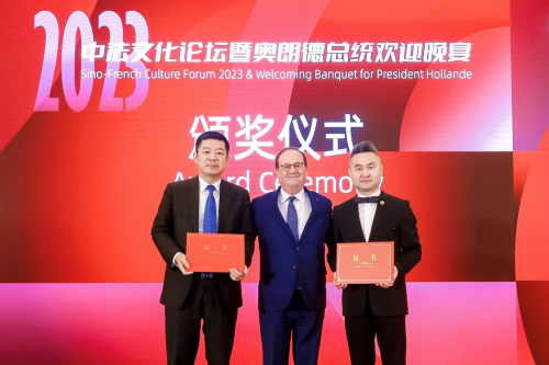 4月28日,由中國未來研究會一帶一路專業委員會主辦,北京國宏經濟文化發展研究院承辦的2023中法文化論壇暨奧朗德總統歡迎晚宴在澳門舉行。熱烈祝賀GEMCORé珈蔻榮膺“法國對外友好交流榮譽品牌”殊榮!熱烈祝賀法國珈蔻國際公司CEO楊建國榮獲“中法友好交流大使”!歡迎晚宴上,奧朗德總統給法國珈蔻國際公司頒發了榮譽證書。