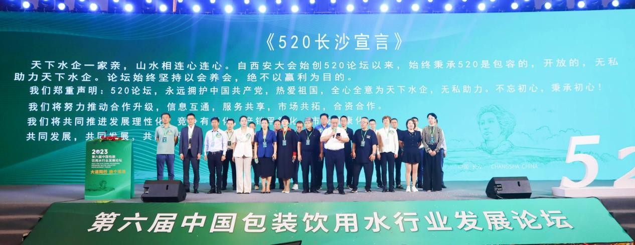 本屆中國包裝飲用水行業(yè)發(fā)展論壇(長沙 520 大會(huì)),在嘉賓分享前開啟了兩個(gè)感人的板塊,即《嗨,520!》行業(yè)發(fā)展精神的視頻和中國包裝飲用水行業(yè)發(fā)展論壇理事代表鏗鏘有力的《520宣言》:520論壇永遠(yuǎn)擁護(hù)中國共產(chǎn)黨,全心全意為天下水企無私助力······。真誠又真實(shí)的《嗨,520!》和《520宣言》,贏得了現(xiàn)場(chǎng)嘉賓、與會(huì)者的陣陣掌聲與喝彩。