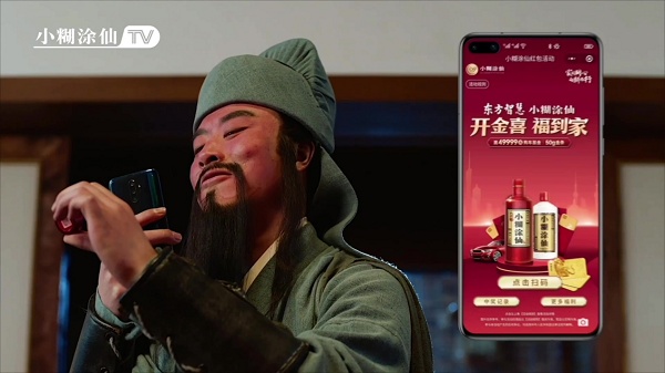 活動(dòng)以開蓋掃碼抽獎(jiǎng)為主要形式,消費(fèi)者購(gòu)買小糊涂仙指定酒品,開蓋掃碼即可抽取49999元購(gòu)車基金、50g虎年傳世金條、2g足金金條及海量微信現(xiàn)金紅包等。“開金喜 福到家”活動(dòng)在線下掃碼開獎(jiǎng),回饋消費(fèi)者的同時(shí),小糊涂仙于雙微平臺(tái)推出social短片《酒煮三國(guó)》,以三國(guó)時(shí)代為背景,結(jié)合產(chǎn)品人群與活動(dòng)賣點(diǎn),巧妙地將“開金喜 福到家”活動(dòng)的核心內(nèi)容傳遞給消費(fèi)者,用古風(fēng)爆梗玩出活動(dòng)新花樣,從滿屏的春節(jié)營(yíng)銷熱潮中突圍。