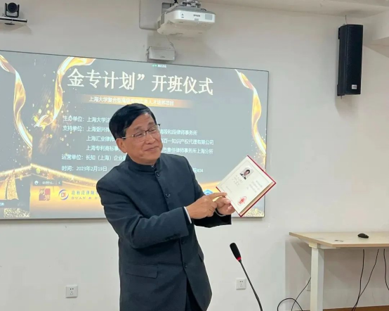 為響應《知識產權強國建設綱要》提出的知識產權人才培養,上海大學法學院、知識產權學院依托上海市知識產權培訓基地、上海大學知識產權信息服務中心、上海國際貿易知識產權海外維權服務基地,聯合上海弼興律師事務所、上海段和段律師事務所、上海匯業律師事務所、上海百一知識產權代理有限公司、上海專利商標事務所和北京集佳律師事務所上海分所等六家知名專利事務所和律師事務所,產教融合,內外協同,面向上海大學全校理工科本科生和研究生,開展“金牌”專利代理師、專利工程師、專利律師等復合型專利實務人才培養,通過線下實訓、實戰培訓,聚焦于培養專業性、高端性、復合型和緊缺型專利實務人才。“金專計劃”是全國首次由高校聯合服務機構培養專利代理實務人才的培訓班。