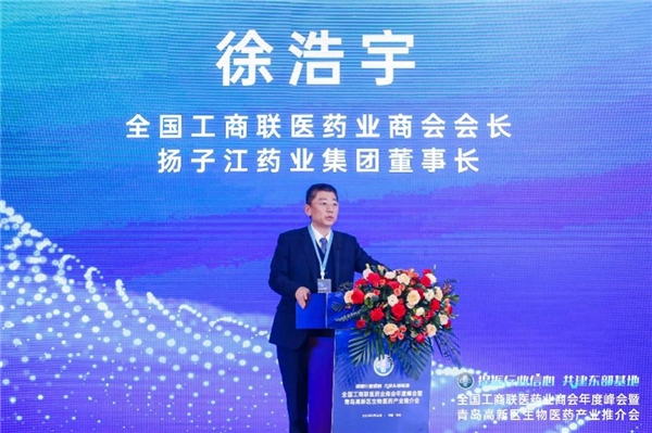 3月26日,全國工商聯醫藥業商會年度峰會暨青島高新區生物醫藥產業推介會在青島召開。全國工商聯醫藥業商會會長,揚子江藥業集團黨委書記、董事長、總經理徐浩宇出席會議并致辭。醫藥行業700余位嘉賓參加本次會議。
