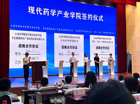 會上,全億健康淮安分部與江蘇護理職業學院中醫藥學院簽署戰略合作協議,攜手共建現代藥學產業學院。