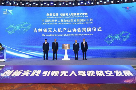 在論壇開幕式上,與會領導與嘉賓向無人駕駛航空第二批試驗區授牌,為吉林省無人機產業協會揭牌,并共同證簽了長春市航空產業園項目。