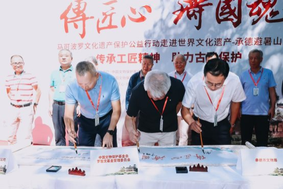 8月23日,“傳匠心·鑄國魂——馬可波羅文化遺產保護公益行動走進世界文化遺產·承德避暑山莊”公益捐贈項目簽約儀式及避暑山莊山區建筑遺址周邊道路日常維護項目開工儀式在承德避暑山莊舉行,旨在通過科技創新和文化創新的力量為世界文化遺產·承德避暑山莊保護賦能。