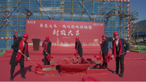 泰康之家·福園超級(jí)體驗(yàn)館封頂儀式現(xiàn)場(chǎng)
