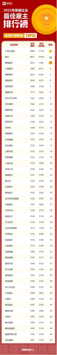 為向這些企業致敬,健康凱歌發起了“2022年第二屆醫健凱歌最佳雇主排行榜”評選活動,經過12月1日-7日的企業征集,12月8日—21日的公開投票,活動累計訪問量***,總票數***。