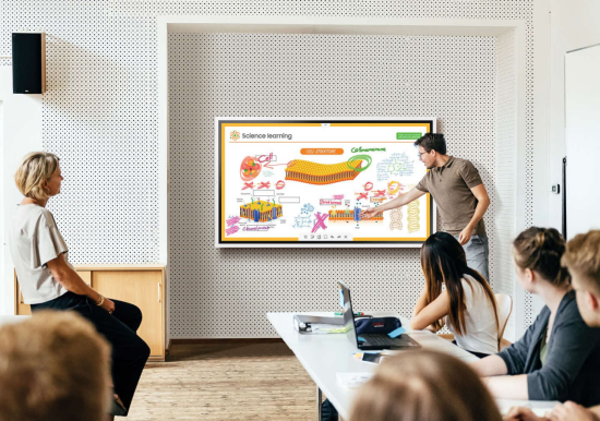 三星商用顯示始終致力于探索并助力教學模式創新。三星電子白板擁有55、65、85英寸產品,為用戶提供流暢的書寫體驗,同時提供多種連接選項,包括USB、HDMI等,筆記本電腦,平板電腦等設備可與電子白板便捷互聯,實現會議輕松投屏。