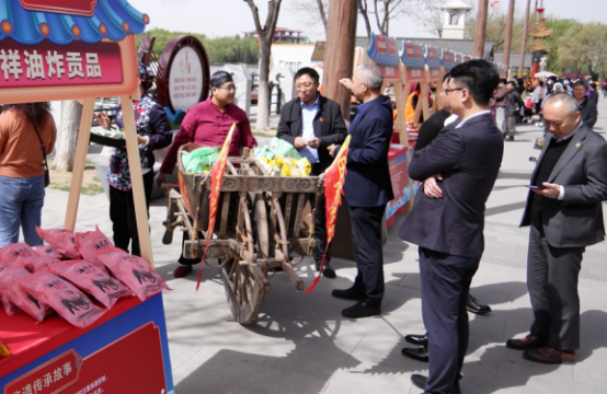 活動現場,漕運碼頭特色集市的合作伙伴——中國非物質文化遺產保護協會“中國非遺美食大集”活動承辦方,為“開槽節”引入了30多個來自全國各地的非遺美食,包括河南道口燒雞、山西平遙油花花、山東蓬萊小面、廊坊正張香油、手繪糖畫等,贏得了市民廣為關注和爭相選購,對于推動非遺與大運河文化旅游的融合發揮了積極作用。