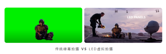 《星球大戰》衍生美劇《曼達洛人》是最早大規模使用LED屏取代綠幕的作品之一,也引起了觀眾們對于虛擬制作技術的興趣。而虛擬制作最重要的環節,就是要用LED背景屏幕來取代綠幕背景,營造出一個逼真的拍攝場景。