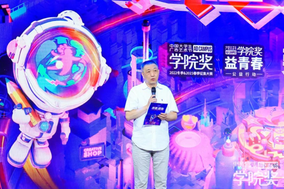 現場,碧生源控股有限公司董事長趙一弘先生帶來精彩演講。碧生源一直以來不斷自我迭代,迎合市場消費變化,做大眾真誠的健康伙伴,通過學院獎等創意征集活動與年輕人進行直接對話,創新策略、創新產品、創新概念,不但助力高校創意學子綻放青春力量,更在此過程中完成非常直觀的用戶溝通和消費者教育。