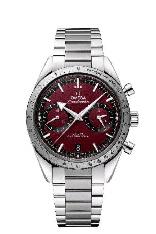 歐米茄超霸系列腕表最初為賽車設計,后來因其卓越的性能成為陪伴人類完成登月任務的首枚腕表。同時,超霸腕表也是地球冒險家的青睞裝備。這款超霸’57腕表采用勃艮第紅色表盤,金屬表圈飾有激光鐫刻的黑色測速刻度。鍍銠小時刻度和”闊箭”指針均覆有白色Super-LumiNova夜光涂層。腕表內部搭載歐米茄9906至臻天文臺機芯。