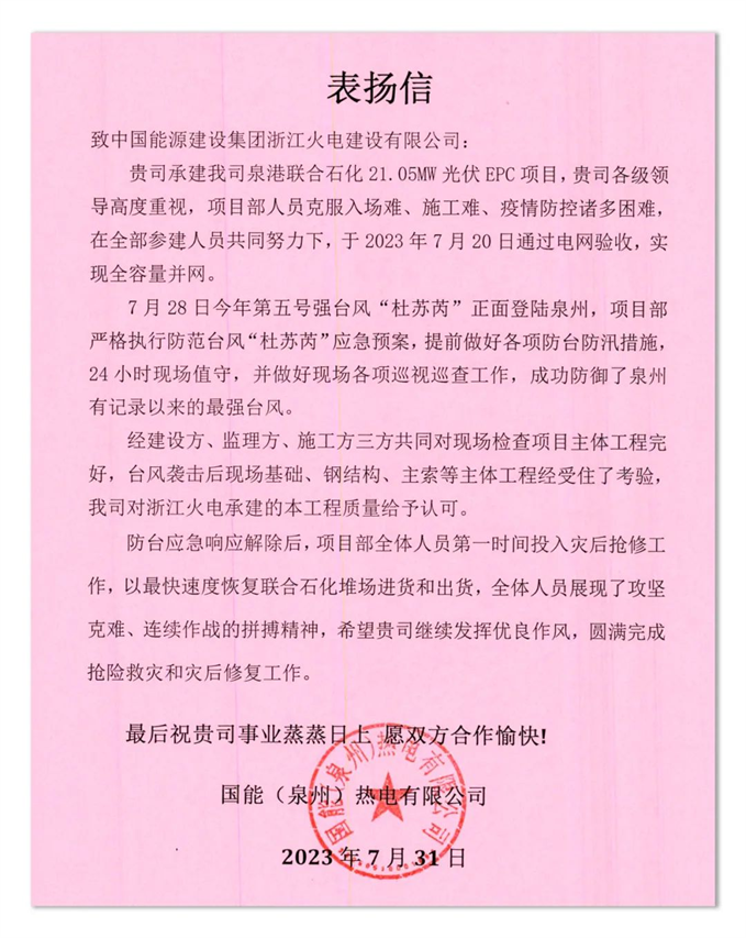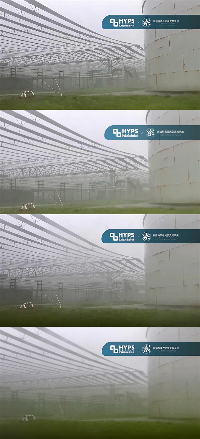 本次遭遇超強(qiáng)臺(tái)風(fēng)“杜蘇芮”,是泉港聯(lián)合石化光伏EPC項(xiàng)目從建設(shè)到并網(wǎng)以來經(jīng)歷的最嚴(yán)苛的挑戰(zhàn);也是索結(jié)構(gòu)柔性光伏支架系統(tǒng)在實(shí)際建設(shè)項(xiàng)目中遇到的最強(qiáng)自然風(fēng)暴。從某個(gè)角度講,索結(jié)構(gòu)柔性光伏支架系統(tǒng)以實(shí)際建設(shè)標(biāo)準(zhǔn),在自然環(huán)境下經(jīng)受了一次非模擬狀態(tài)的“風(fēng)洞試驗(yàn)”。